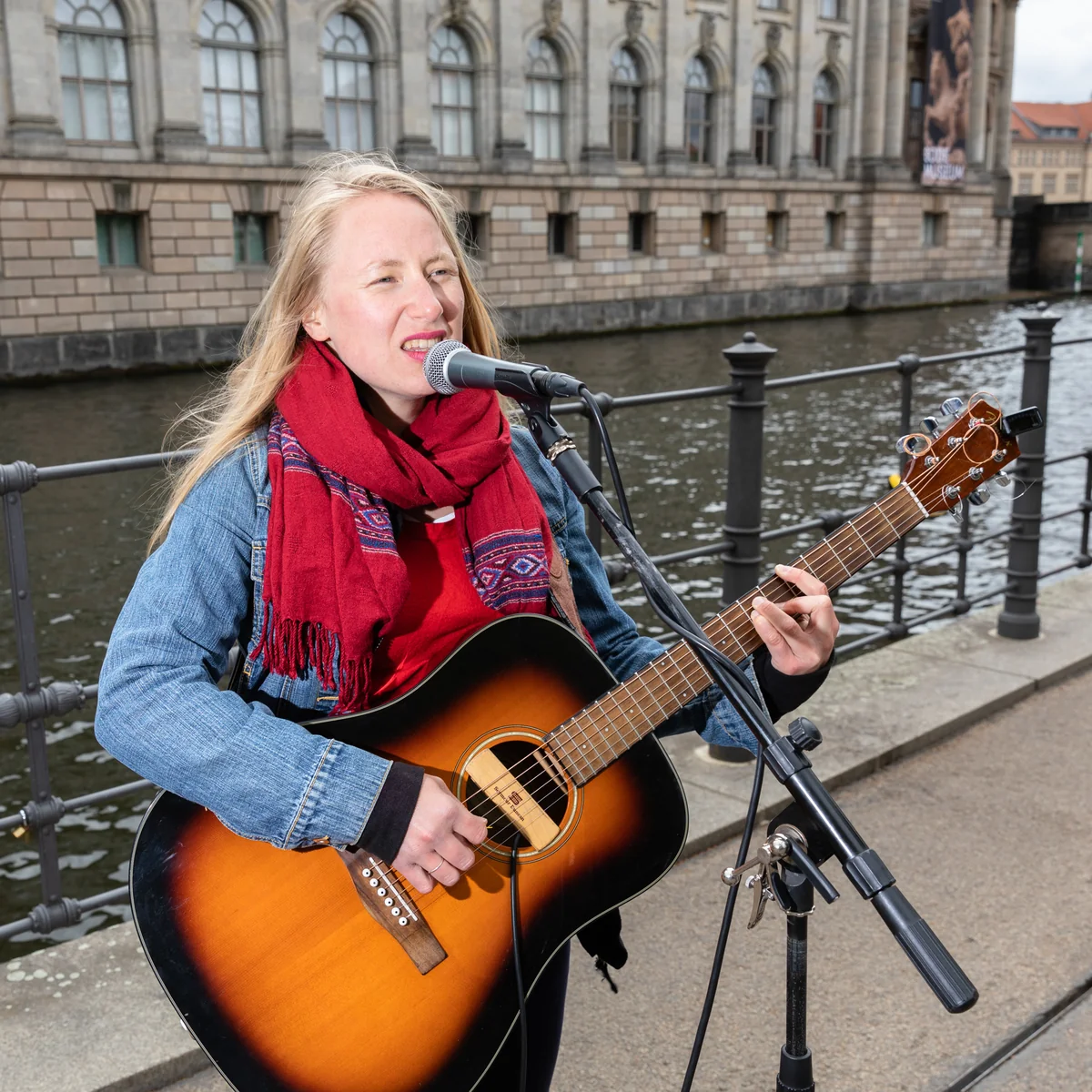 So auch Mary Ocher, eine der inzwischen international bekanntesten Musikerinnen Berlins. Sie zog vor zwölf Jahren von Tel Aviv nach Berlin und trat schon bald an den unterschiedlichsten Orten der Stadt auf öffentlichen Plätzen auf. Auch nachdem sie bereits ihr erstes Album veröffentlicht hatte und erste Club-Gigs spielte. „Du triffst auf unheimlich viele Leute auf der Straße“, sagt sie, „diese kennen dich dann, weil sie dich im Mauerpark gesehen haben, und kommen irgendwann vielleicht zu deinen regulären Shows, laden dich auf Festivals ein oder auf Partys.“ Das Spielen auf der Straße sei für sie außerdem eine „großartige Möglichkeit gewesen, ein Publikum zu erreichen, auch ohne dafür eine große Infrastruktur oder die Hilfe von irgendjemandem zu benötigen“.