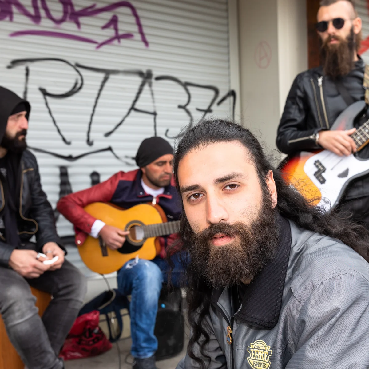Nur ein paar Meter von Straßenmusiker Ernst entfernt, direkt am Eingang zur S-Bahn-Station an der Warschauer Brücke, stehen fünf weitere Musiker und spielen nichts Verrücktes, sondern Rockklassiker. „Nothing Else Matters“ von Metallica etwa, oder „Hotel California“ von den Eagles. Klingt jetzt nicht so spannend, aber die Coversongs haben was. Zwei Gitarren, Bass, einer imitiert das Schlagzeug und klopft auf ein Stück Holz, ein anderer spielt eine Rassel. Die Musik kommt aus einem scheppernden Lautsprecher, was jedem der Songs eine leicht psychedelische Note gibt.