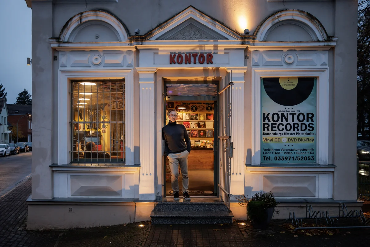 Zu einer der Hauptattraktionen in Kyritz gelangt man am leichtesten, wenn man an der Endstation der Bummelbahn aussteigt. Von dort sind es nur ein paar Meter, bis man bei Kontor Records anlangt, „Brandenburgs ältestem Plattenladen“, wie es am Eingang heißt. Das eigentlich Sensationelle an dem ist vielleicht aber weniger, dass er mit seinen 30 Jahren auf dem Buckel der älteste in diesem Bundesland ist, sondern dass es ihn überhaupt gibt, besser gesagt: überhaupt noch gibt.