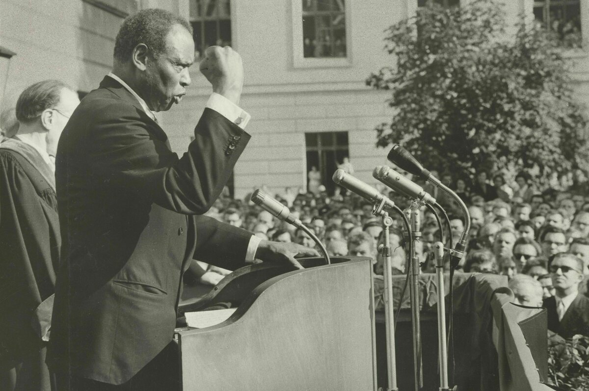 Geboren 1898 als Sohn eines Sklaven, der durch die Underground Railroad via Detroit in die Freiheit geschleust wurde, absolvierte er als dritter Schwarzer überhaupt jene Hochschule in New Jersey. Bevor Robeson in den 1920ern als Sänger und Schauspieler Weltruhm erlangte, war er bereits als Anwalt tätig, verließ seine Kanzlei aber aufgrund von Diskriminierung und erhob seine Stimme fortan auf der Bühne.