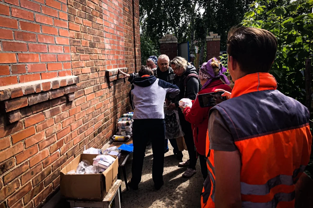 Weil sie oft in gefährlichen Gegenden des Donbass unterwegs sind, haben Aleksei und sein Team schon mehrfach in Ortschaften, wo die Kämpfe noch anhalten, humanitäre Hilfe in Form von Lebensmitteln und Medikamenten gebracht.