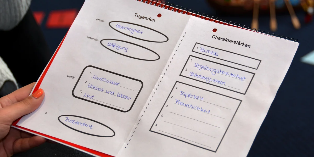 Ihre Lieblingsübung sei der „Jahrmarkt der schlechten Eigenschaften“, sagt Ellen Scheiter: Jede*r schreibt eine Eigenschaft, die er*sie an sich nicht mag, auf einen Zettel und legt ihn in einen Korb. Dann wird ein Zettel gezogen, und die Aufgabe ist es, die Eigenschaft meistbietend zu versteigern. Die anderen Schüler*innen ringen darum, die Eigenschaft zu bekommen. Was den Kindern vermittelt werden soll: „Jede ungemochte Eigenschaft hat eine gute Seite“, erklärt Scheiter.