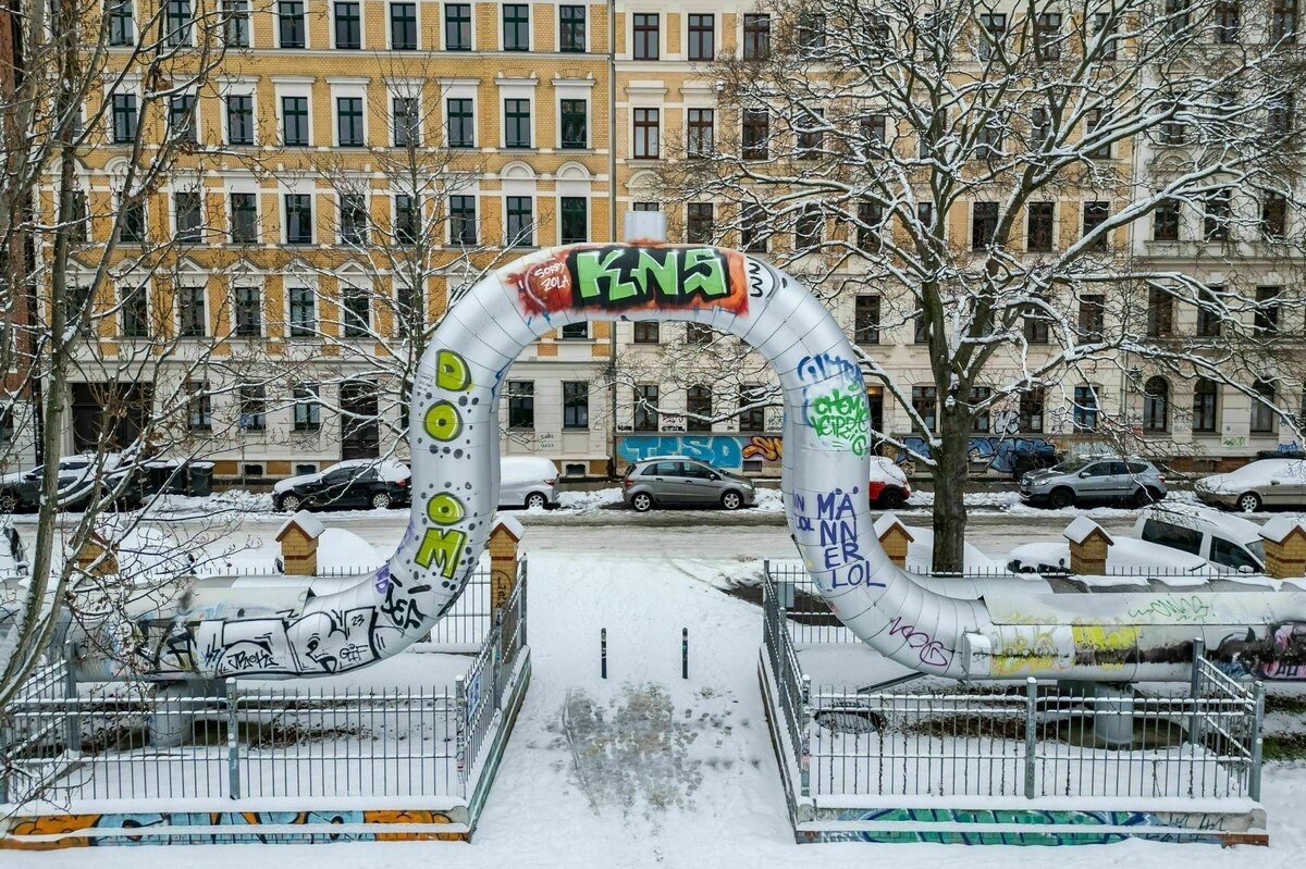 Eine Fernwärmeleitung führt durch ein Viertel in Leipzig Foto: Jan Woitas/dpa