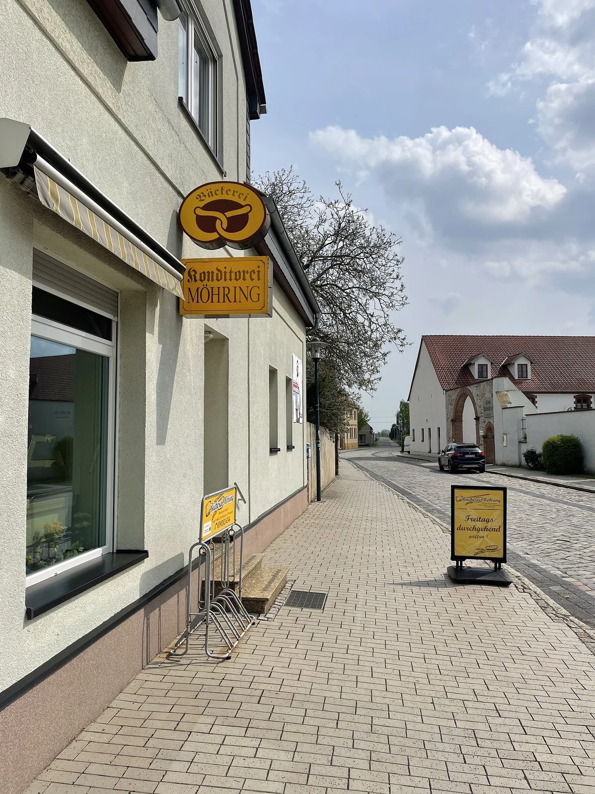 Der Weg vom Bahnhof zur Bäckerei führt an blühenden Feldern vorbei, der Bauer tuckert auf seinem Traktor vorbei und grüßt freundlich. In einer ruhigen Gasse mit Kopfsteinpflaster und Fachwerkhäusern prangt an einem unscheinbaren Wohnhaus ein gelbes Brezelschild. Hier hat der Familienbetrieb Bäckerei Möhring seinen Sitz – und die Familie wohnt auch gleich drüber.