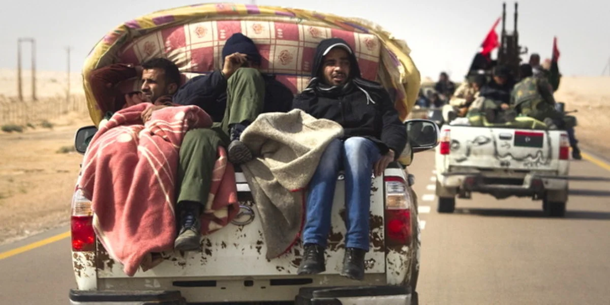 Gaddafi ließ nie einen Zweifel daran, dass er den Weg von Tunesiens Ben Ali oder Ägyptens Mubarak nicht wählen würde. Ab 22. Februar setzte das Regime Panzer, Kampfflugzeuge und schwere Artillerie ein, um die Proteste niederzuschlagen. Doch die Regimegegner bewaffneten sich ihrerseits. Sie gründeten in Bengasi am 27. Februar eine Gegenregierung, den Nationalen Übergangsrat, und zu Tausenden strömten Jugendliche mit Gewehren auf Pick-ups durch die Wüste, um von Osten her das Land zu erobern. Ihr politischer Enthusiasmus sollte ihre mangelnden militärischen Fähigkeiten kompensieren.