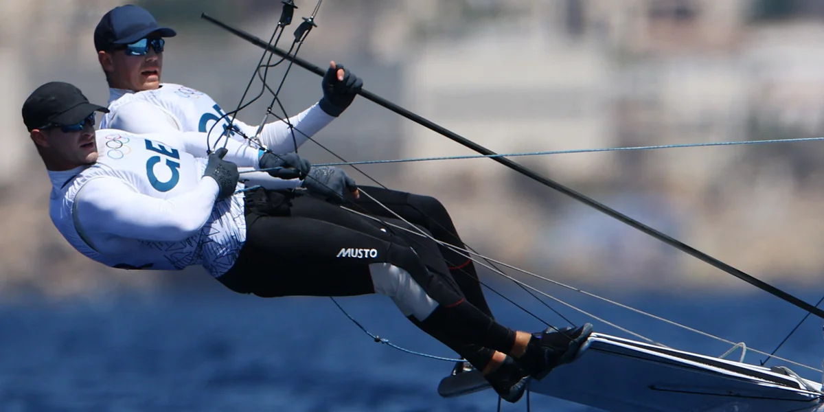 Die Segler Jakob Meggendorfer und Andreas Spranger liegen mit ihrem 49er-Boot gut im Rennen. Die Vorbereitung hat ihnen einiges abverlangt.