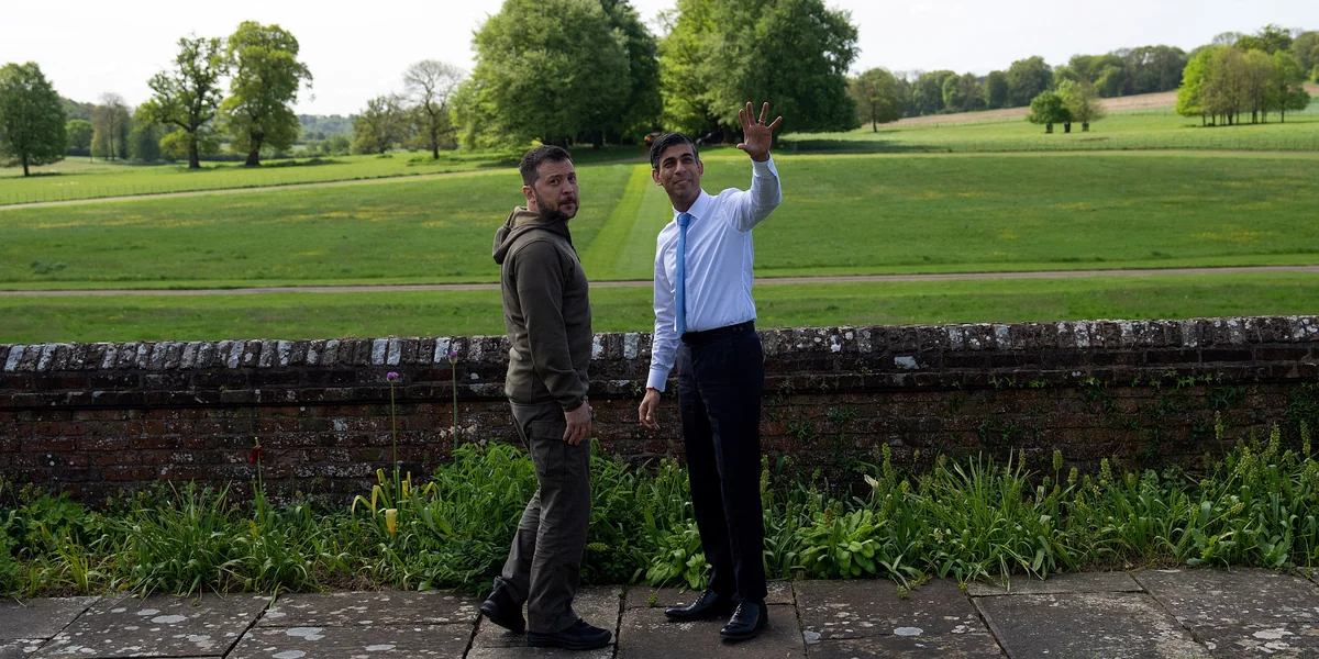 Der britische Premierminister Rishi Sunak empfing Selenski auf Chequers, dem traditionellen Landsitz britischer Premierminister, und kündigte an, Großbritannien bemühe sich um das Zustandekommen der von Selenski gewünschten „Kampfjet-Koalition“, um die Ukraine mit modernen Kampfjets des Typs F-16 auszustatten.