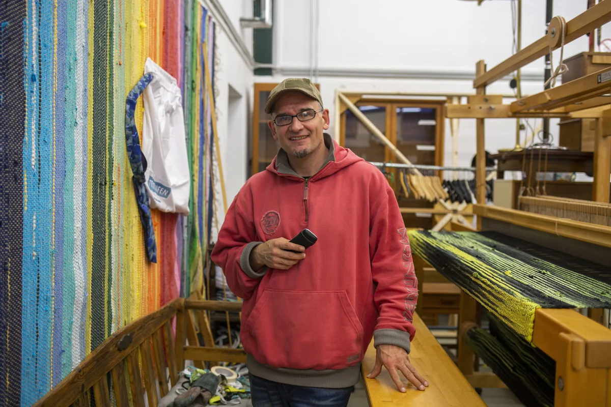 Unterhosen müssten die Obdachloseneinrichtungen sonst ankaufen, der Bedarf ist hoch. Doch auch hippe Oberbekleidung entsteht hier unter Mithilfe des Experten. Alttextilien werden neu zusammengesetzt und mittels eines einfachen Druckverfahrens mit Lavendelöl mit Motiven versehen. Auch einen Webstuhl gibt es im Textilhafen, mit dem in Streifen geschnittene Kleidung zu Teppichen verarbeitet wird.