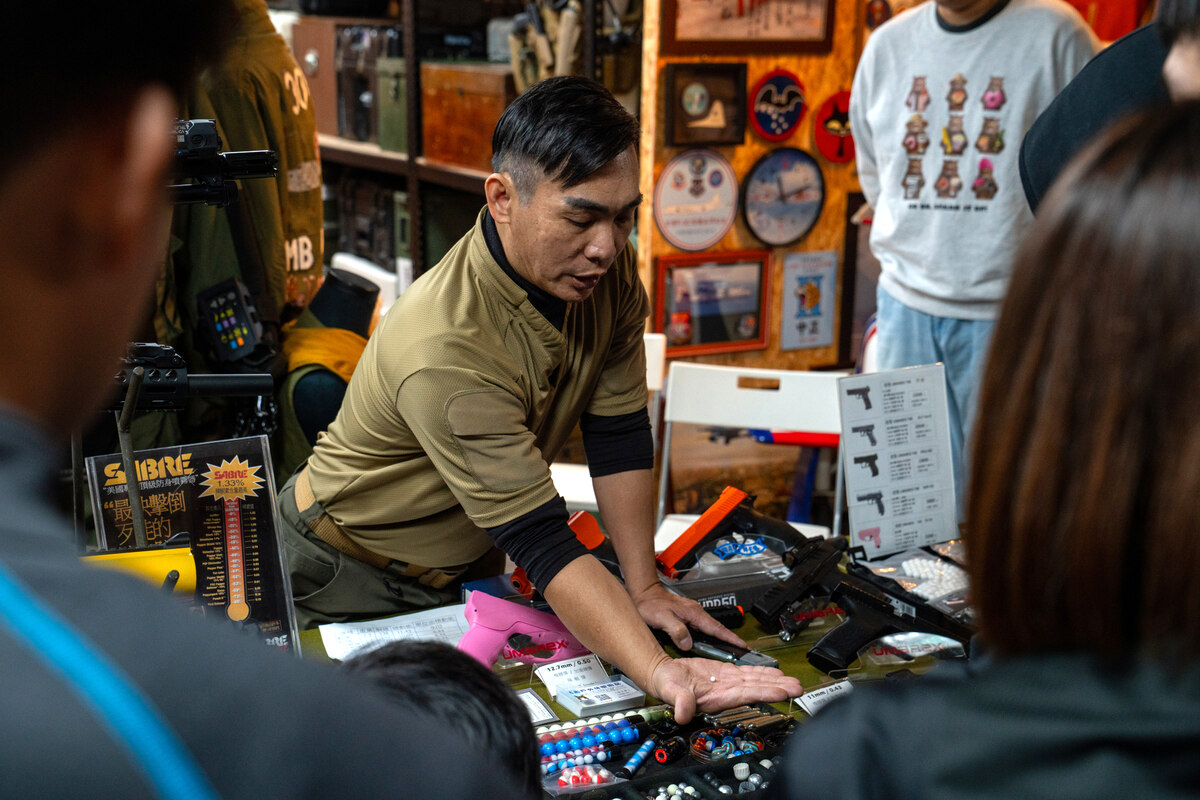 Im Showroom reihen sich Sturmgewehre, Pistolen und Schrotflinten aneinander, deren Metallgehäuse und präzise Verarbeitung sie zu täuschend echten Repliken ihrer Vorbilder machen: Kalaschnikows, Berettas und vor allem das T91 – jenes Standardsturmgewehr, das taiwanische Soldaten im Dienst führen. Mit dem Unterschied, dass die Waffen hier nicht scharfe Munition, sondern kleine Plastikkugeln verschießen.
