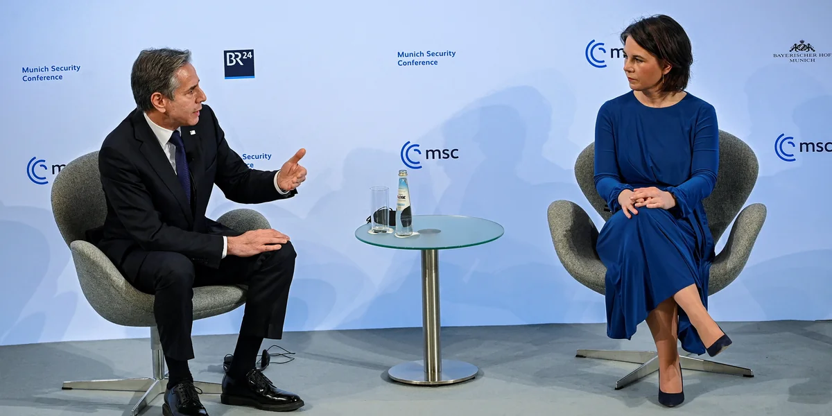 Und so redet der Westen dieses Jahr vor allem bei den großen Fragen in erster Linie mit sich selbst. Außenministerin Annalena Baerbock beschwört in ihrer Rede die Einigkeit in EU und Nato. „Wir schöpfen unsere Stärke aus unserem gemeinsamen Handeln“, sagt sie. Gehe Russland gegen die Ukraine vor, gebe es Sanktionen – „präzedenzlos und mit allen Partnern abgestimmt“. Für sie persönlich liege dabei auch die Pipeline Nord Stream 2 auf dem Tisch. Und überhaupt: Falsch sei es, von einem Ukraine-Konflikt zu sprechen. Es gehe um einen Russland-Konflikt.
