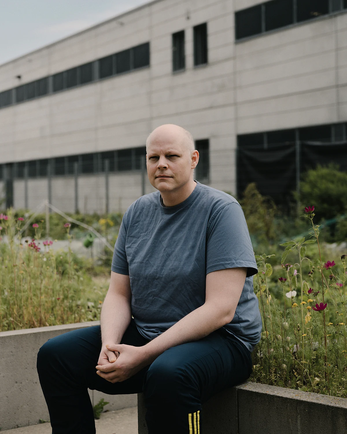 Christian Twachtmann trägt helle, lichte Haarstoppeln, ein hellblaues T-Shirt und eine dunkelblaue gestreifte Hose. Nach mehreren Jahren Haft wegen Banküberfällen und Betrügereien ist er seit 2021 in der Sicherungsverwahrung. Offiziell ist er damit nicht mehr im Gefängnis; raus kommt er trotzdem nicht.
