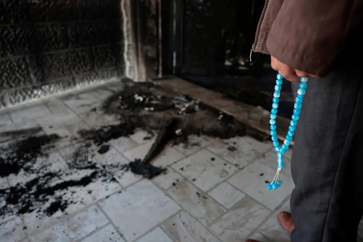Brandspuren an einer Moschee, hebräische Hassgraffiti auf der Außenmauer: Nach dem Angriff ruft die Autonomiebehörde die internationale Gemeinschaft an.