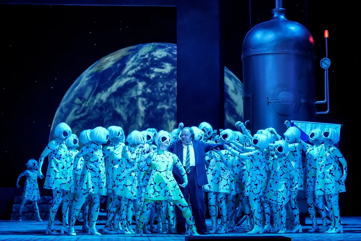 Die späten sechziger Jahre sind die historische Folie, die Carsen seinem „Brouček“ zugrunde legt: Schicksalsjahre für die damalige Tschechoslowakei, bewegte Zeiten auch für den Rest der Welt. In der Mondwelt agiert ein hinreißend bizarres Ballett elfenhafter Außerirdischer und eine selbstverliebte Hippie-Gesellschaft, in die Brouček passt wie die Faust aufs Auge.