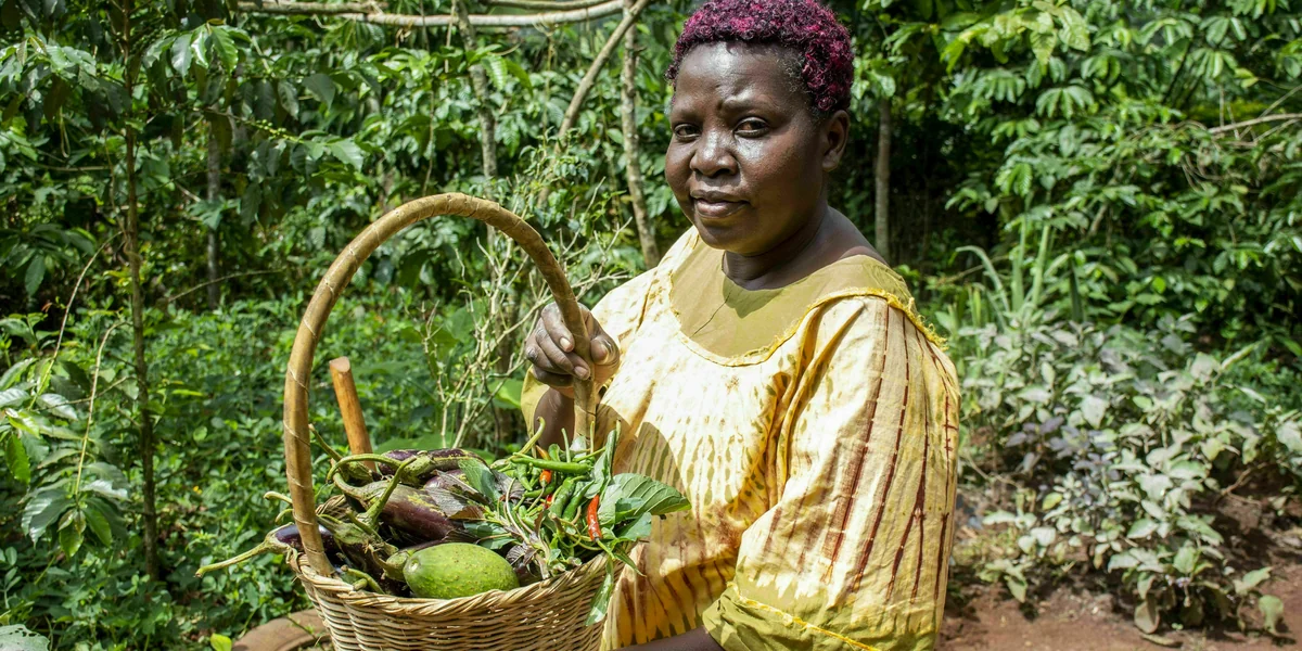 Nanyunja zeigt nach oben auf den Avocadobaum, die Kaffeesträucher und die Bananenstauden, die dazwischen emporwachsen und dem Acker Schatten spenden, sodass der Boden die Feuchtigkeit halten kann. „Unsere traditionelle dreidimensionale Anbauweise hat uns vor dem Hunger bewahrt“, sagt sie und deutet auf die Bohnenranken und Jampflanzen, die sich an den Stauden emporschlängeln. „So haben schon meine Urgroßeltern angebaut“, sagt sie lachend.