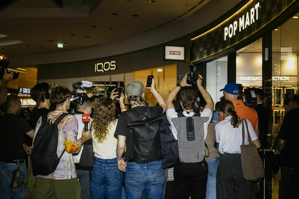 Die Menschen vor dem Alexa wollen das Original. Dafür ist ihnen keine Wartezeit zu lang, kein Preis ist zu hoch. „Was Labubus angeht, sind wir gut aufgestellt“, ruft Steffen Liese, Head of Retail Central Europe, gegen 11:30 Uhr durch ein Megafon zur Warteschlange. Eine Frau macht Freudensprünge. Andere sitzen in Campingstühlen, es werden neue Freundschaften geknüpft. Niemand ist in Eile, sie wissen, was sie erwartet. Kennen die Tiktoks.