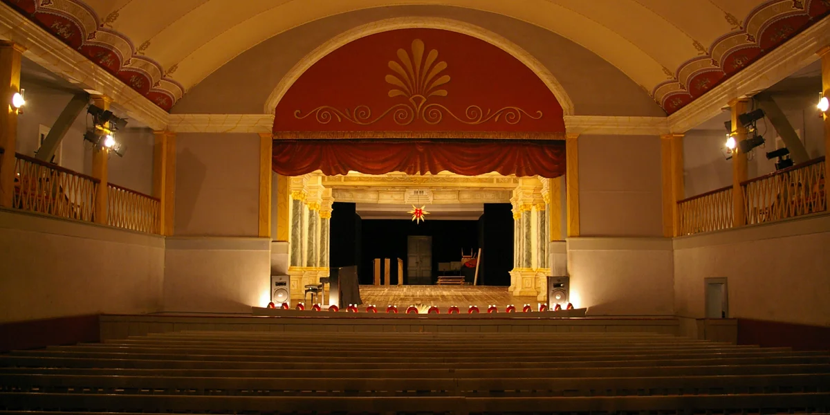 Die eigentliche Faszination beginnt im Inneren. Es gibt 456 Plätze, maximal 25 Musiker finden im Orchestergraben Platz. Doch als Museumsleiterin Ute Boebel das inzwischen elektrische Licht einschaltet, hat man den Eindruck, in einem der großen Opernhäuser zu sitzen. Die Illusionsmalerei auf der stoffbespannten Decke, die umlaufende Galerie, die geschickte Beleuchtung – alles trägt dazu bei.