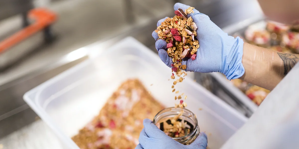 Ein Hauch von Weihnachten liegt in der Luft in einem Industriegebiet in Lüneburg, und das mitten im Januar. In der Rösterei der Müsli-Manufaktur Heyho wird heute die Sorte „Apfel Stroodle“ verbacken, mit einer ordentlichen Ladung Kardamom und Zimt. Dazu läuft Radio-Pop, bei den Backstreet Boys wird auch mal beherzt mitgesungen. Die Stimmung ist gut, trotz eines Personalengpasses. Geschäftsführer Christian Schmidt steht hinten im Lager und klebt Etiketten. „Mir macht das Spaß, wenn ich mit anpacken kann wie am Anfang.“