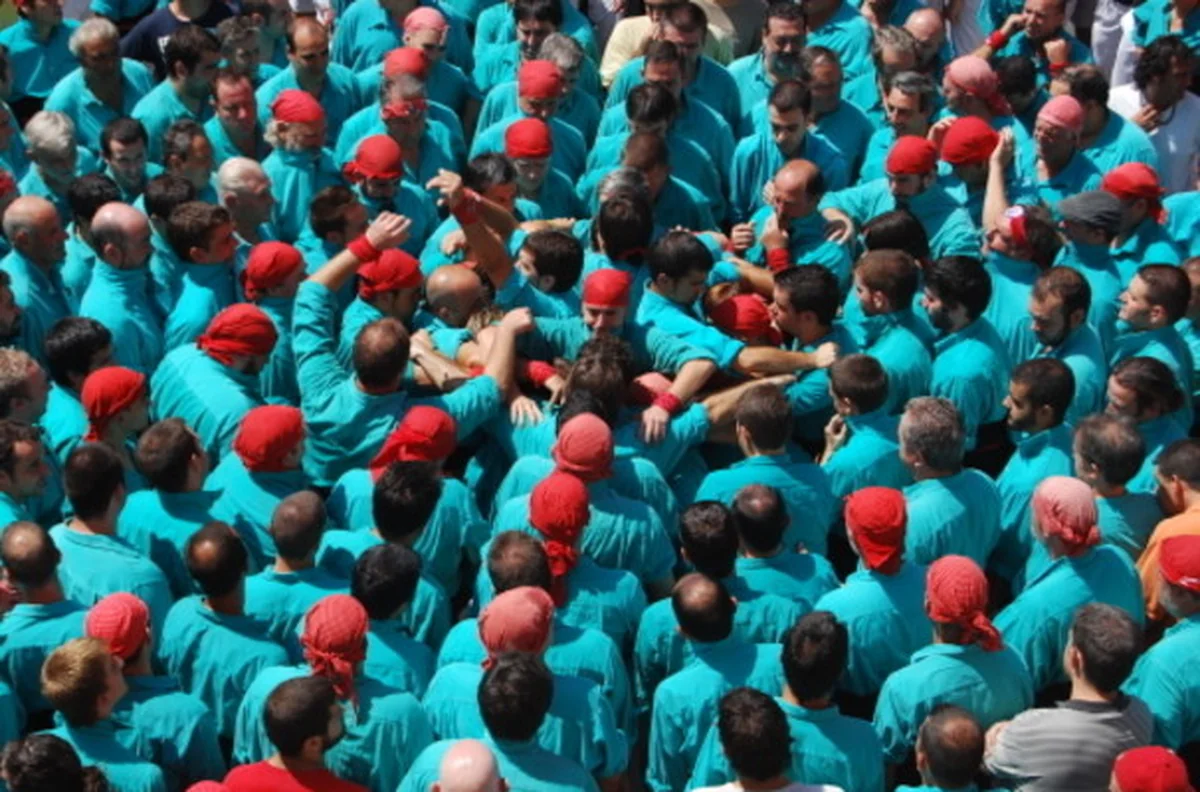 Wer diesem Schauspiel noch nie beigewohnt hat, dem bleibt jetzt nahezu das Herz stehen. Einige der durcheinanderpurzelnden Leiber fallen immerhin aus der Höhe eines mehrstöckigen Hauses. Doch die Menge, die sich von Baustart an mit erhobenen Händen dicht an die „Colla“ genannte Castellmannschaft gedrängt hat, fängt die Stürzenden zuverlässig auf und führt sie kontrolliert zu Boden.