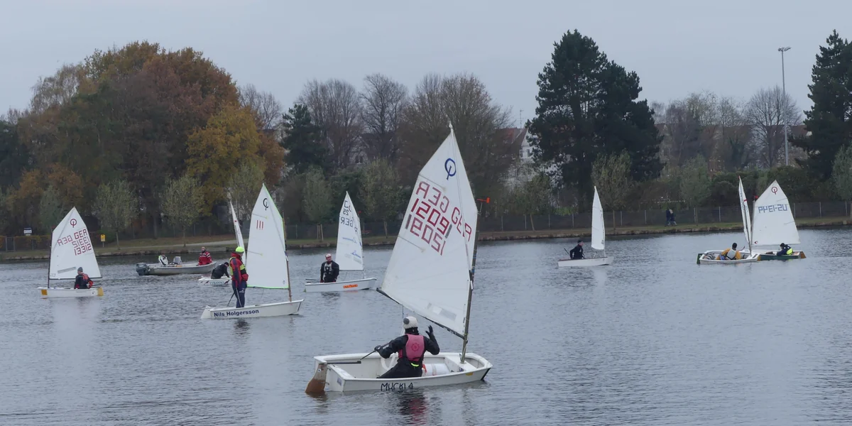 Das Wetter wird der Veranstaltung gerecht. Bei 0 Grad, die sich anfühlen wie Minus 3 Grad ziehen und knoten 20 Menschen am Tauwerk ihrer Segelboote der Optimistenklasse. Unter Ihnen ist Clara Weimer. Die 26-jährige Studentin nimmt zum ersten Mal an der Eisarsch-Regatta teil. „Läuft Eins-A!“ antwortet sie verschmitzt grinsend auf die Frage, wie die Vorbereitungen zwei Stunden vor dem Start laufen. Moralische Unterstützung erhält sie von zwei Freunden der Familie und ihrem Vater, der die Regatta auch einige Male mitsegelte.