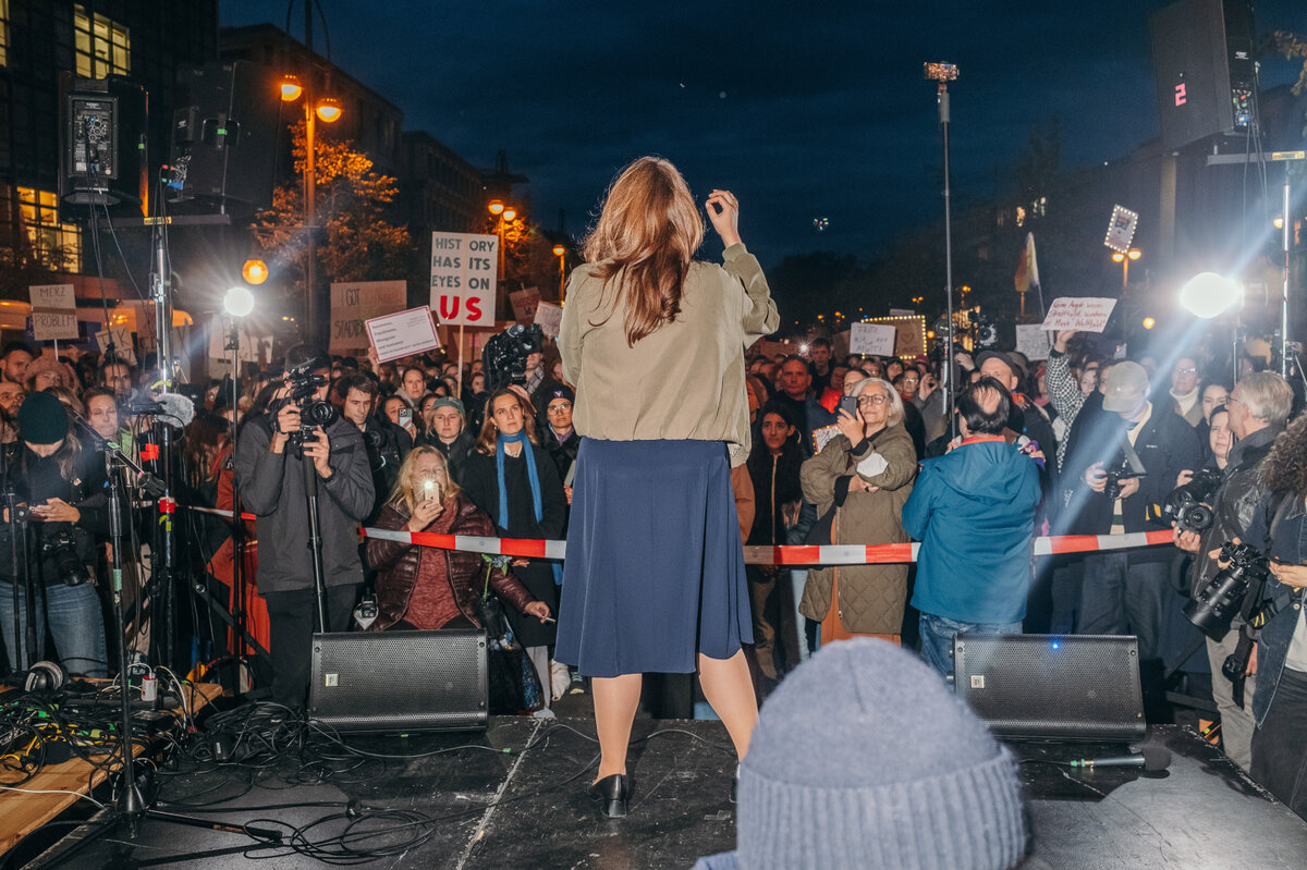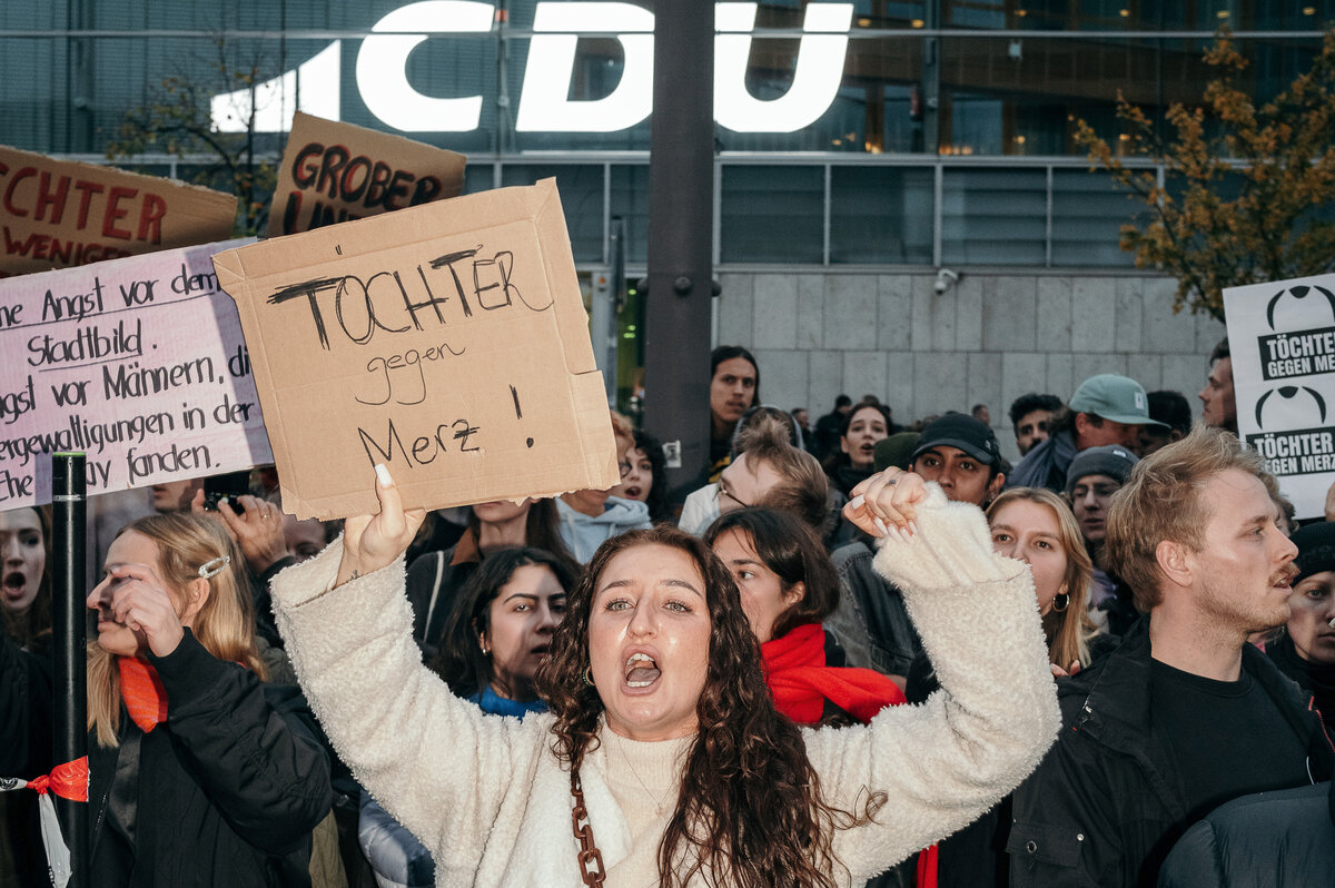Kajsa, 17 Jahre, Berlin: „Von Friedrich Merz zu hören, dass er seine menschenverachtenden Ideologien durchsetzen will, um junge Frauen, Töchter wie mich, zu schützen, fühlt sich an wie ein Schlag ins Gesicht. Ich will nicht von einem Mann wie Friedrich Merz beschützt werden. Ich will nicht, dass er so tut, als wäre es ihm wichtig, dass ich mich in diesem Land wohl fühle und dass ich in diesem Land die gleichen Rechte habe wie ein Mann. Ja, ich habe Angst, wenn ich nachts allein durch meine Stadt laufe. Aber diese Angst gilt Männern. Und sie bleibt dieselbe, egal ob es deutsche Männer sind oder Männer mit Migrationshintergrund. Wenn er uns jungen Frauen und Töchtern wirklich helfen will, muss er den Frauenhass in unserer Gesellschaft bekämpfen, etwas gegen Gewalt in der Ehe unternehmen, dafür sorgen, dass ich weiterhin frei über meinen Körper bestimmen kann, und sicherstellen, dass Väter Unterhalt zahlen. Ich möchte in einer Stadt leben, die bunt ist und offen anderen Kulturen gegenüber. Denn wer unser Stadtbild wirklich zerstört, sind Faschisten, Nazis und Kapitalisten.“