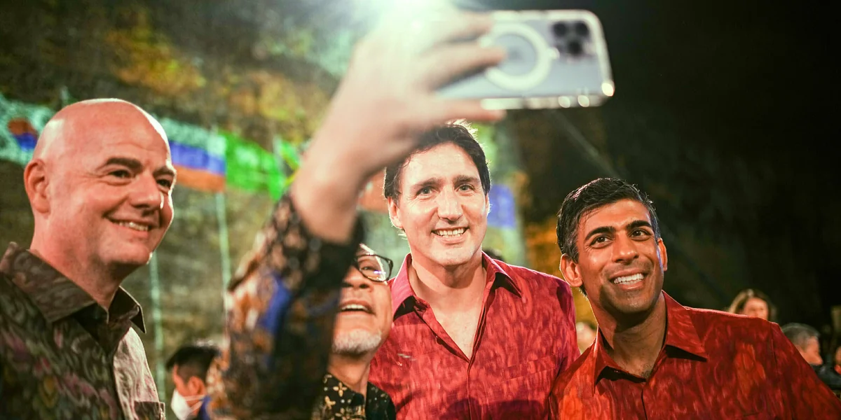 „Das rote Hemd passt hervorragend zu Rishi Sunaks Haaren.“ Oder: „Trägt Trudeau ein rotes Hemd, sieht er aus wie seine Landesflagge.“