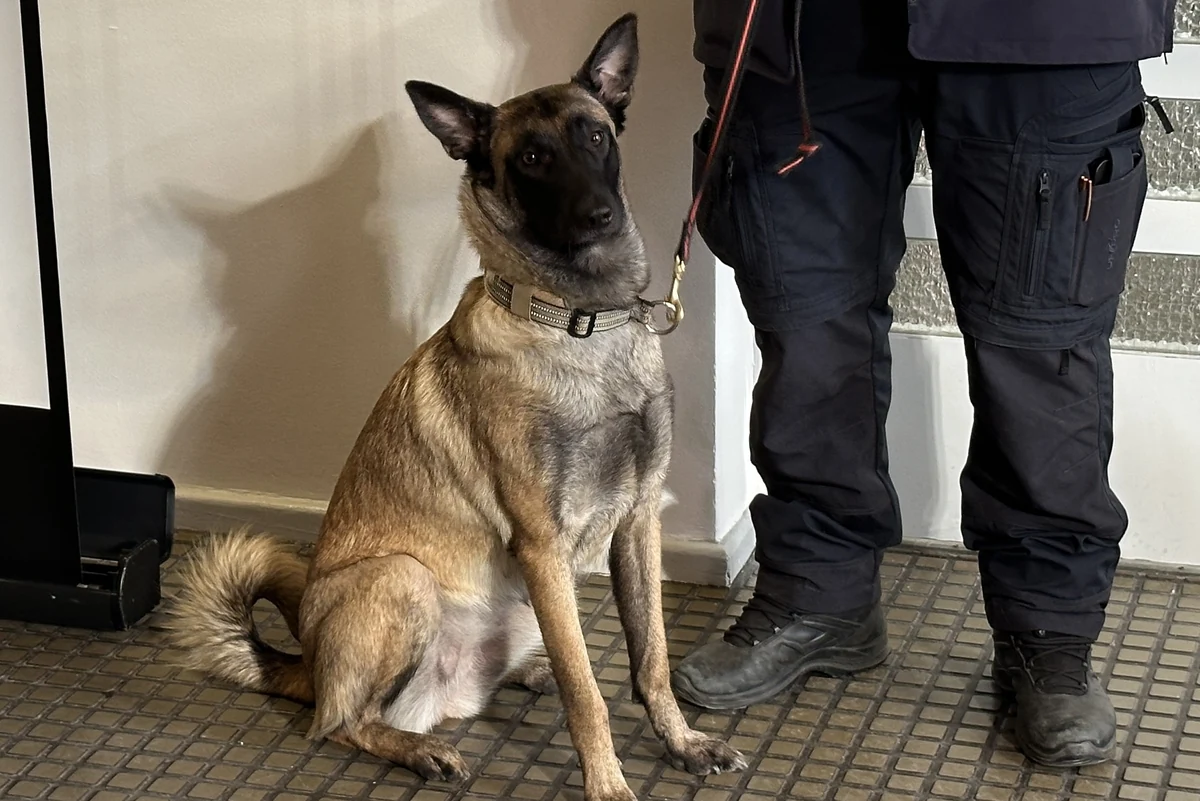 Nur kurz können die Hunde vorgeführt werden, an größere Menschenmengen sind sie nicht gewöhnt. Die Tiere wirken etwas aufgedreht, als sie mit ihren Hundeführern den Raum betreten. Kein Wunder, denn sie werden begrüßt von einer Front aus Kameras, Smartphones und Mikrofonen. Ganz schön anstrengend für die Spürnasen.