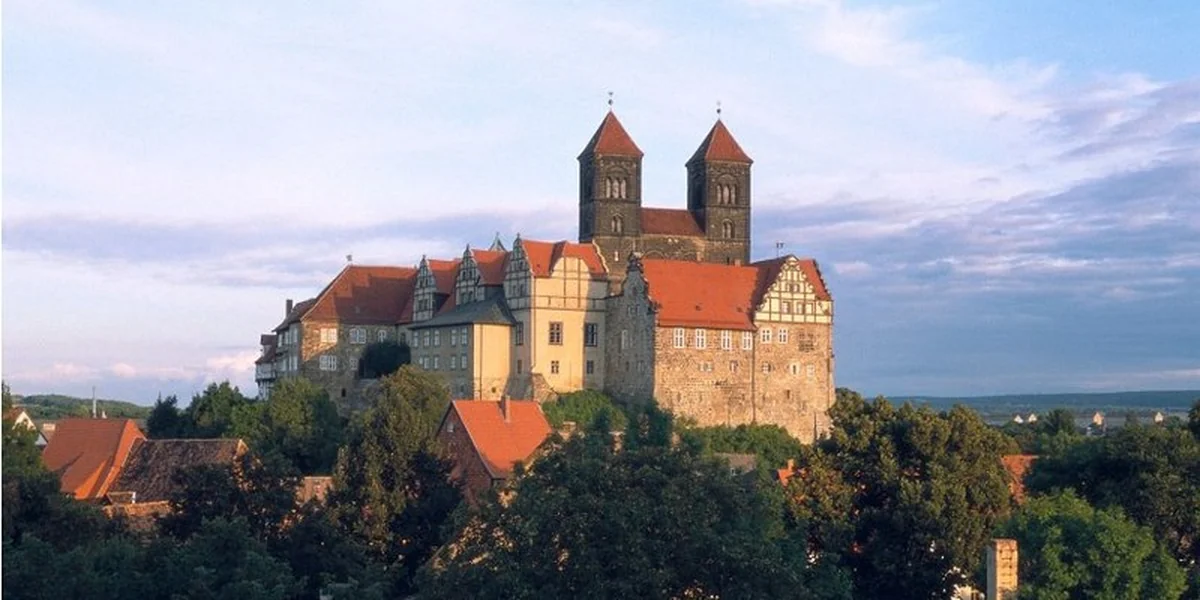 Auf dem Schlossberg Quedlinburgs dann ein Traumbau, die Stiftskirche St. Servatius. Die kaiserliche Basilika hält, was repräsentative Romanik verspricht, sie erweckt innen ein überaus stimmiges und harmonisches Raumgefühl. Der Sinn ihrer Baumeister für klare Formen und perfekte Raumaufteilung, die seitlichen Arkaden und Bögen, der helle Sandstein erinnern an antike Vorbilder. Und an das Streben nach Vollkommenheit. Zur Krypta mit ihren vielen Säulen und Pfeilern und den Kreuzgratgewölben sind es nur wenige Stufen hinab. Erst seit dem Frühjahr ist sie für eine begrenzte Besucherzahl wieder geöffnet. Die empfindlichen Deckenmalereien wurden über mehrere Jahre lang restauriert.