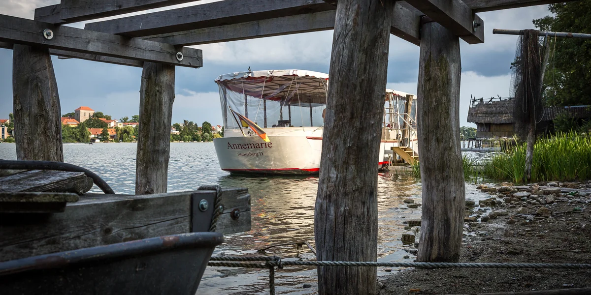 Die Stadt Strausberg hat zuletzt der Fähre Pontons verpasst, also schwimmende Schiffsanleger. In den Sommermonaten konnte die Strausseefähre die Fahrgäste am Anleger nicht mehr komfortabel erreichen. Als in der letzten Abendsonne einige beschwipste Tagestouristen über den neuen Ponton stapfen, verteilt Ahamat Gadji Azina Faltblätter für Kulturveranstaltungen in der Stadt. Er schätze „die Ruhe“ der Seelandschaft inmitten Wäldern.