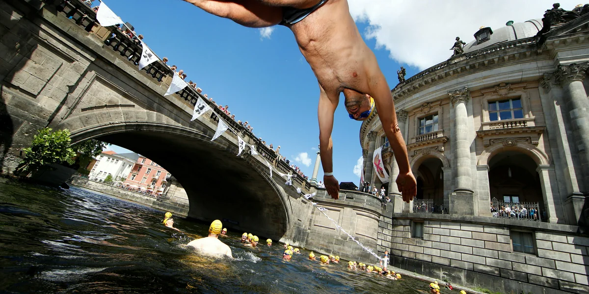 Es war noch im vergangenen Jahrtausend – 1998, um genau zu sein –, als die Brüder Jan und Tim Edler erstmals ihre Vision ausbreiteten: Menschen steigen in der Sommerhitze über eine am Lustgarten gelegene Freitreppe in den kühlen Spreekanal auf der östlichen Seite der Museumsinsel hinab, kraulen hinüber zum Humboldt Forum, lassen sich bis zum Bodemuseum treiben. Ein Bild urbaner Lässigkeit und Lebensfreude.