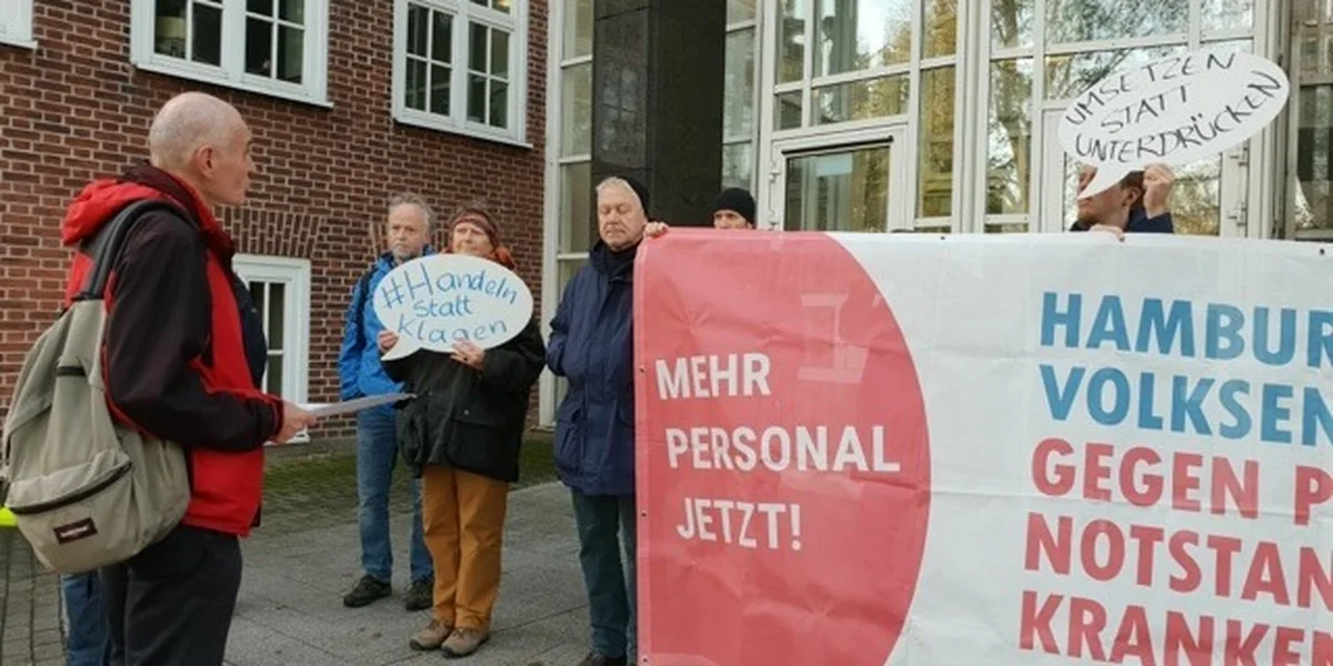 Am heutigen Montagnachmittag soll deshalb eine Protestkundgebung auf dem Rathaus stattfinden. „Die Klage ist ein Angriff auf Hamburgs Pflegekräfte, Hebammen und Reinigungskräfte“ sagt Kirsten Rautenstrauch, selbst Krankenschwester und eine Sprecherin des Bündnisses. „Und es ist ein Schlag ins Gesicht der 30.000 Bürger, die für unser Gesetz unterschrieben haben.“