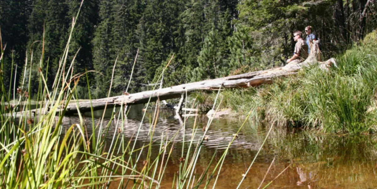 Wie Natur aussehen kann, wenn sie sich selbst überlassen wird, sieht man am Naturpark Wildsee bei Ruhestein. Der See ist von Bannwald umgeben, seit 1911 wird die Natur dort sich selbst überlassen, kein Baum wird mehr gefällt. Urwaldartige Zustände, umgestürzte Bäume, wuchernde Farne und Moose – ganz anders als die ordentlich aneinandergereihten Fichten, die sonst das Gesicht des Schwarzwalds prägen. Anders als Martin Zepf glaubt Jochen Rothfuß vom Freundeskreis pro Nationalpark nicht, dass die unberührte Natur die Touristen abschreckt. Im Gegenteil.