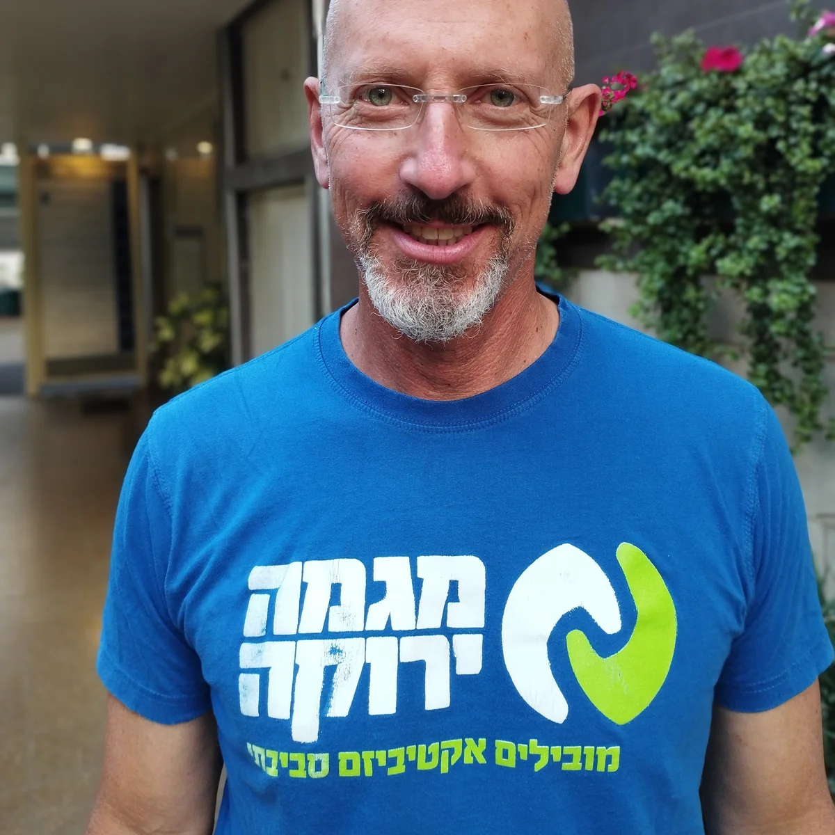 Auf dem T-Shirt des Aktivisten steht die Aufschrift „grüner Kurs“, seit rund fünf Jahren ist Biran bei Green Course dabei und versucht unermüdlich, die israelische Öffentlichkeit darüber zu informieren, wie akut die Situation ist.