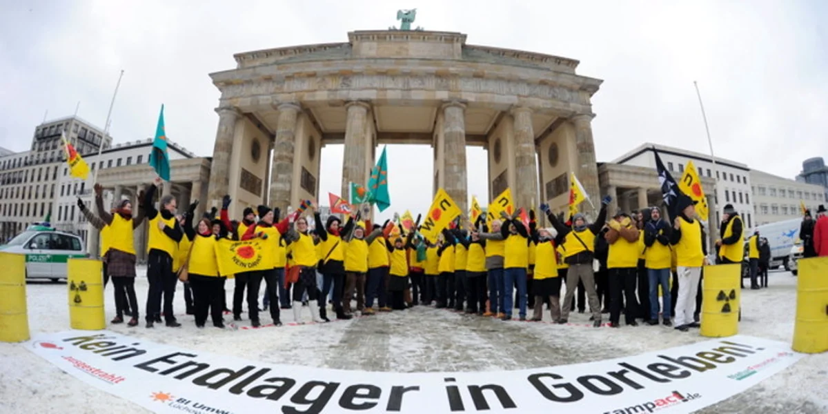 Vor den Bund-Länder-Gesprächen protestierten über 100 Atomkraftgegner verschiedener Organisation in Berlin. Sie forderten, Gorleben wegen der erwiesenen geologischen Mängel komplett aus dem Verfahren herauszunehmen.