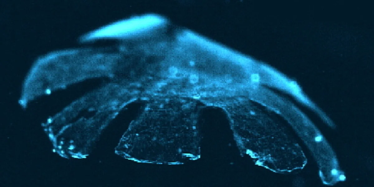 Entlang dieser vorgezeichneten Bahnen wuchsen Herzmuskelzellen von Ratten, die die Forscher dem Konstrukt einimpften. Nach einigen Tagen entstanden so miteinander verbundene Stränge von Muskelzellen, die in alle acht Lappen der Kunstqualle hineinreichten.