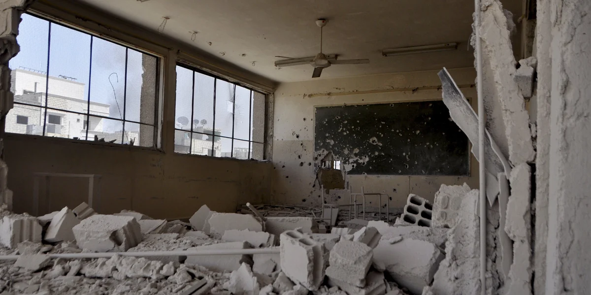 Diese Schule in Jarmuk wurde laut Aktivisten von Faßbomben des Regimes zerstört