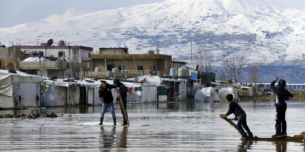 Die Stürme „Norma“ und „Miriam“, die im Januar über den Libanon fegten, haben diesen Winter zu einem der heftigsten der letzten Jahre gemacht. Besonders hart hat es die syrischen Flüchtlinge getroffen, die in inoffiziellen Zeltlagern in der Bekaa-Ebene oder im Nordlibanon leben. Tausende mussten ihr Zelt fluchtartig verlassen. In einem Lager in Arsal begrub eine meterhohe Schneedecke die Zelte. In Bar Elias, wo Familie al-Khaled seit sieben Jahren lebt, flutete der überlaufende Fluss Hunderte Zelte.
