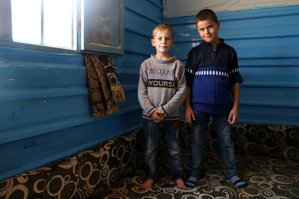Mohammads Zuhause ist ein Wohncontainer, vier mal acht Meter groß, mit blau bemalten Metallwänden und einem Fenster an der Seite, die von einer silbernen Thermomatte abgeschirmt ist. Auf dem Boden ringsum sind Matratzen verteilt. In einer Ecke bewegt ein Ventilator die Luft. Im Sommer klebt der Schweiß auf der Haut. Über 30 Grad sind es dann tagsüber, manchmal auch 44. Ein junges Mädchen mit dunkelrotem Kopftuch trägt in den Raum frisches Wasser für Mohammad, seine Oma und zwei Geschwister – das jüngere ist erst ein Monat alt.