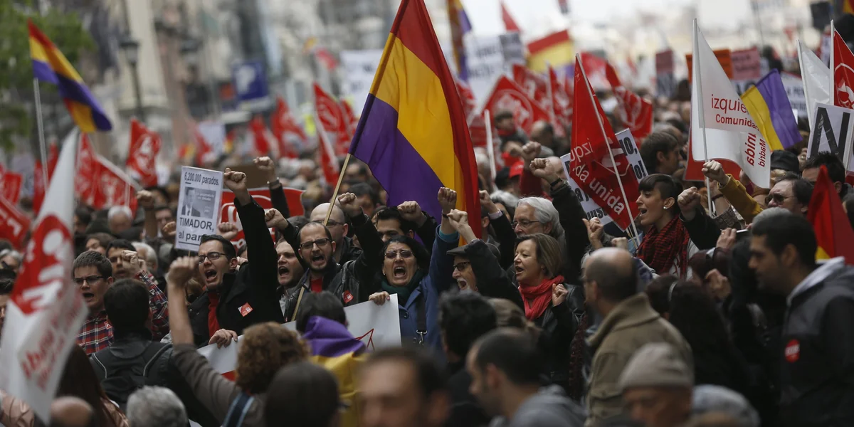 Trotz des immer wieder einsetzenden Nieselregens sind Zehntausende zum 1. Mai nach Madrid gekommen. Gerufen haben die beiden großen Gewerkschaftszentralen Spaniens, CCOO und UGT. Die Stimmung ist wie das Wetter: trübe.