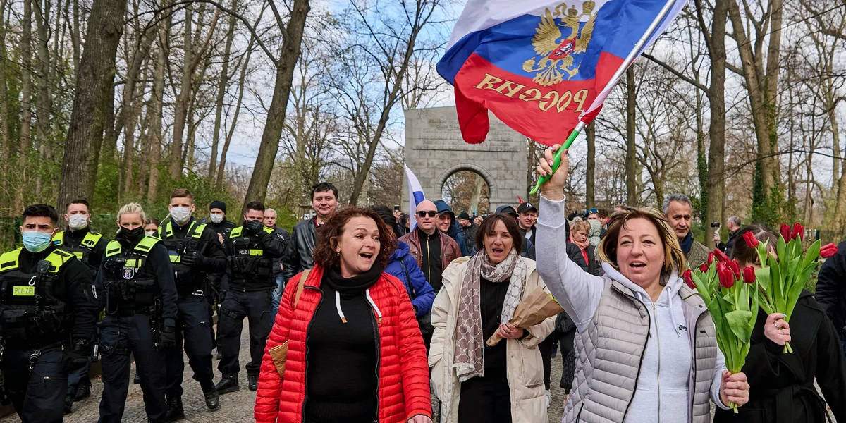 Am 9. Mai, der in Russland als Tag des Sieges begangen wird, soll die angebliche „Entnazifizierung“ der Ukraine in eine Reihe mit dem Sieg über den deutschen Faschismus 1945 gestellt werden. Vom Roten Platz in Moskau abgesehen eignen sich dafür die Sowjetischen Ehrenmale in Berlin am besten. Von hier sollen Bilder nach Moskau gesendet werden, die von russischem Heldentum erzählen – oder auch von der Unterdrückung russischsprachiger Menschen in Berlin.