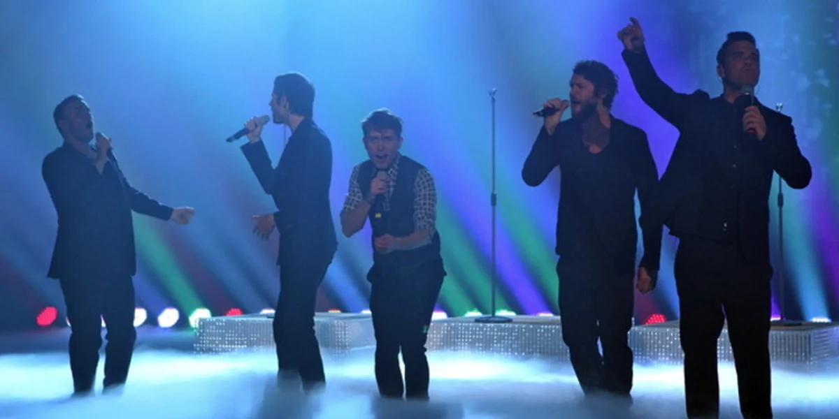 Jetzt drehen die Fans richtig auf. Sie kreischen in Kameras, Smartphones oder einfach so - natürlich ironisch, denn sie sind alle, wie auch die Take-That-Mitglieder, um die 40. Es ist ein Kreisch-Revival, bei dem jeder den Namen seines Lieblingsmitglieds kreischt, sobald die Jungs, äh, Männer, die Bühne betreten. Aber Mr. Most wanted fehlt. Sollte Robbie Williams etwa noch durch die Lebensmittelvergiftung, die er sich gerade in Dänemark zugezogen hatte, noch verhindert sein? Das wäre eine Katastrophe …