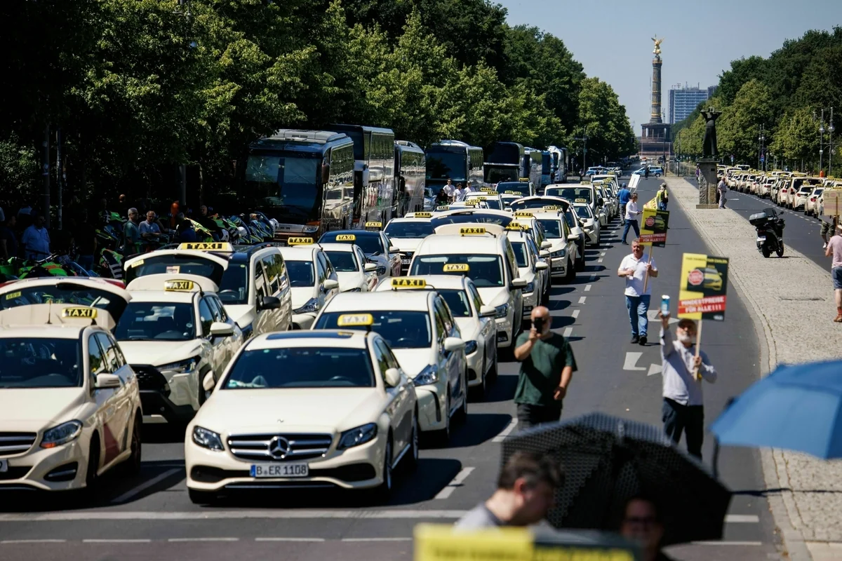 Zahlreiche pastellgelbe Autokorsos zogen am Mittwoch durch insgesamt 13 deutsche Großstädte. Die Taxibranche rief zum „Nationalen Aktionstag“ auf, mit dem sie eine härtere Reglementierung ihrer Konkurrenz von Uber, Bolt und anderen Mietwagenanbietern fordert.