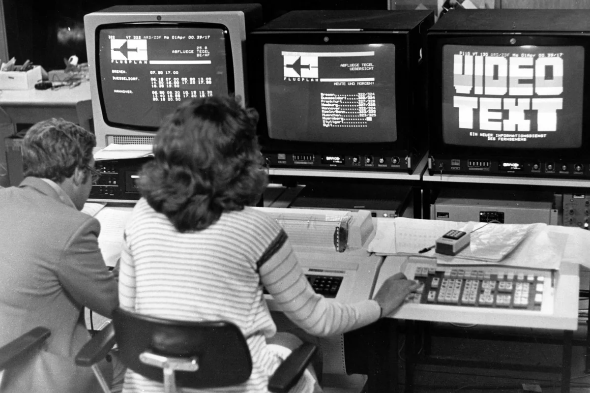 Bis am 1. Juni 1980 endlich der Videotext kommt. Ein offiziell als „Teletext“ bezeichnetes Medium, das auf magische Art im Fernsehsignal mit übertragen wird und das man mit der Fernbedienung aufrufen und darin navigieren kann. Aus der damaligen Perspektive ist es eine Art ständig aktuell gehaltene Zeitung auf dem Fernsehschirm; in der Rückschau eine sehr textlastige Nachrichten-App auf einem nichtmobilen Gerät.