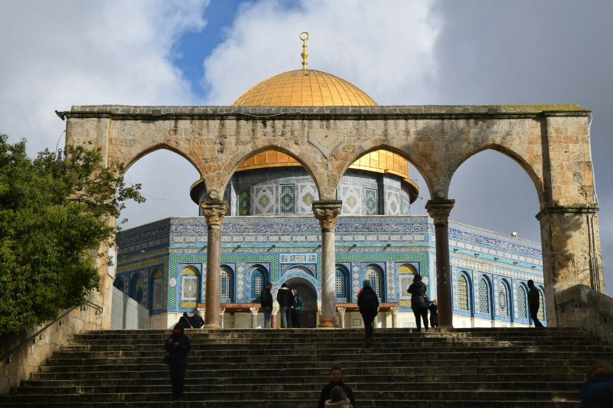 Ziemlich ungelegen kommt, dass genau dort, wo sich heute Felsendom und Al-Aksa-Moschee befinden, zwischen 516 vor Christus und 70 nach Christus der Zweite jüdische Tempel gestanden haben soll – bis zu seiner Zerstörung im Krieg durch die Römer. Sogar der Erste Tempel zur Zeit Solomons soll sich dort erhoben haben, wenngleich archäologische Beweise dafür nie gefunden wurden. Somit ist der Tempelberg der heiligste Ort für Jüd*innen weltweit sowie die designierte Stelle für einen Wiederaufbau des Tempels seitens mancher ultraorthodoxer Gruppen.