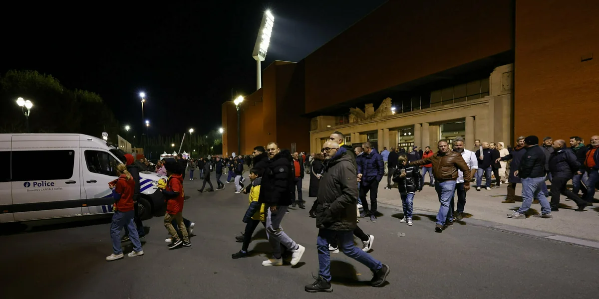 Das Fußballspiel im fünf Kilometer vom Tatort entfernten Stadion wurde kurz nach den Schüssen in der Halbzeitpause bei einem Stand von 1:1 abgebrochen. Laut dem belgischen Sender RTBF wollten die schwedischen Spieler die Partie angesichts der Ereignisse nicht weiter fortsetzen.
