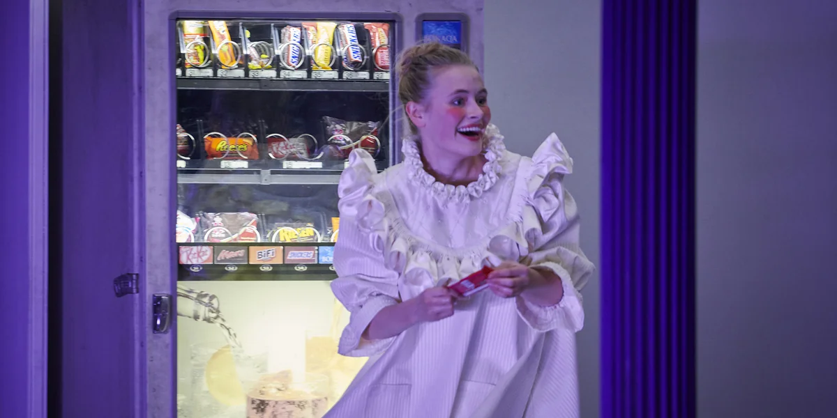 Die Eskalation geht in die Breite: Das Mühlengerippe aus Pfeilern und Leuchtreklame am Bühnenrand wird nach und nach mit Automaten für Limonade und Schokoriegel bestückt: Vorboten des Zuckerfabrikanten aus Krickerode und Seitenhieb gegen Coca-Cola, Mars, Nestlé und so weiter. Zucker gegen die Bitterkeit des Lebens, heißt es einmal, was hier in einer rauschhaften Fressorgie mündet, über die sich auch jüngere Texte in den Raabe schleichen.