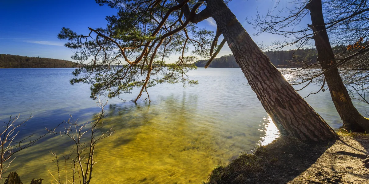 Die Bänke am Ufer sind verwaist. Der Kiosk, der im Sommer die Badegäste mit Bockwurst und Caipirinha versorgt, ist geschlossen. Auch die Kanus sind verschwunden. Der Wind kräuselt die riesige Wasserfläche, die sich im dichten Waldgebiet des Naturparks ausbreitet. Ansonsten ist es still. Wie zu Fontanes Zeiten.