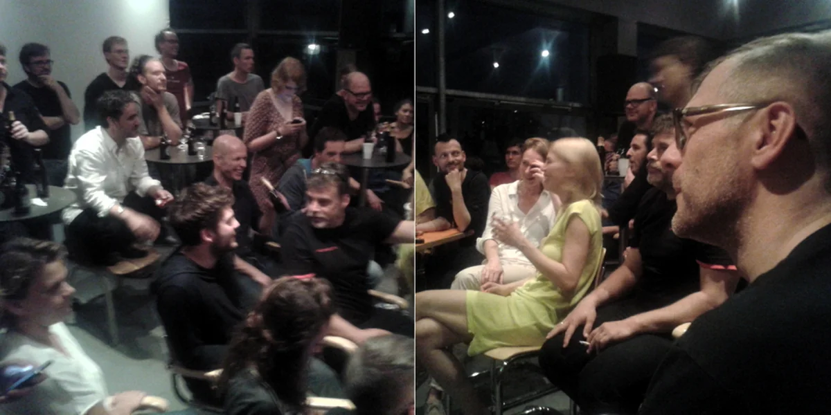 21.55: Auf der Terrasse der taz ist die halbe Redaktion versammelt. Streit, ob der Ton bei den Nationalhymnen abgestellt wird. taz-Schlandlandexperte Michael Brake fordert uns zum Aufstehen auf. Vergeblich.