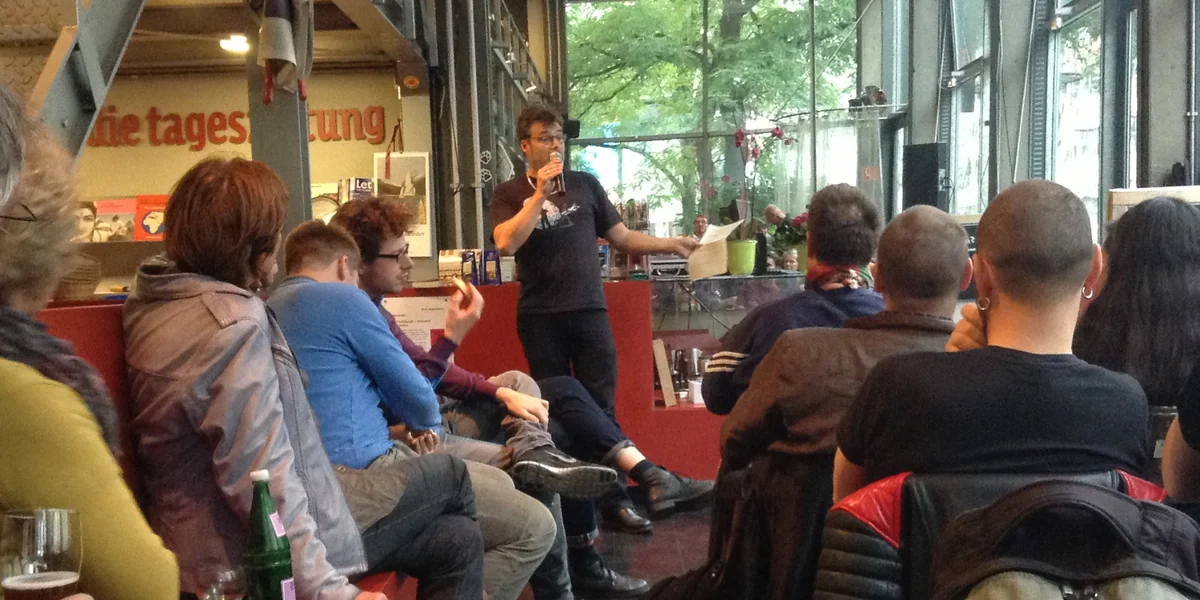Im taz-Cafe kommentieren taz-Chefredakteurin Ines Pohl und Exilbayer Andreas Rüttenauer das Wahlgeschehen. Rüttenauer unterhält die Gäste mit Stand-up-Comedy.