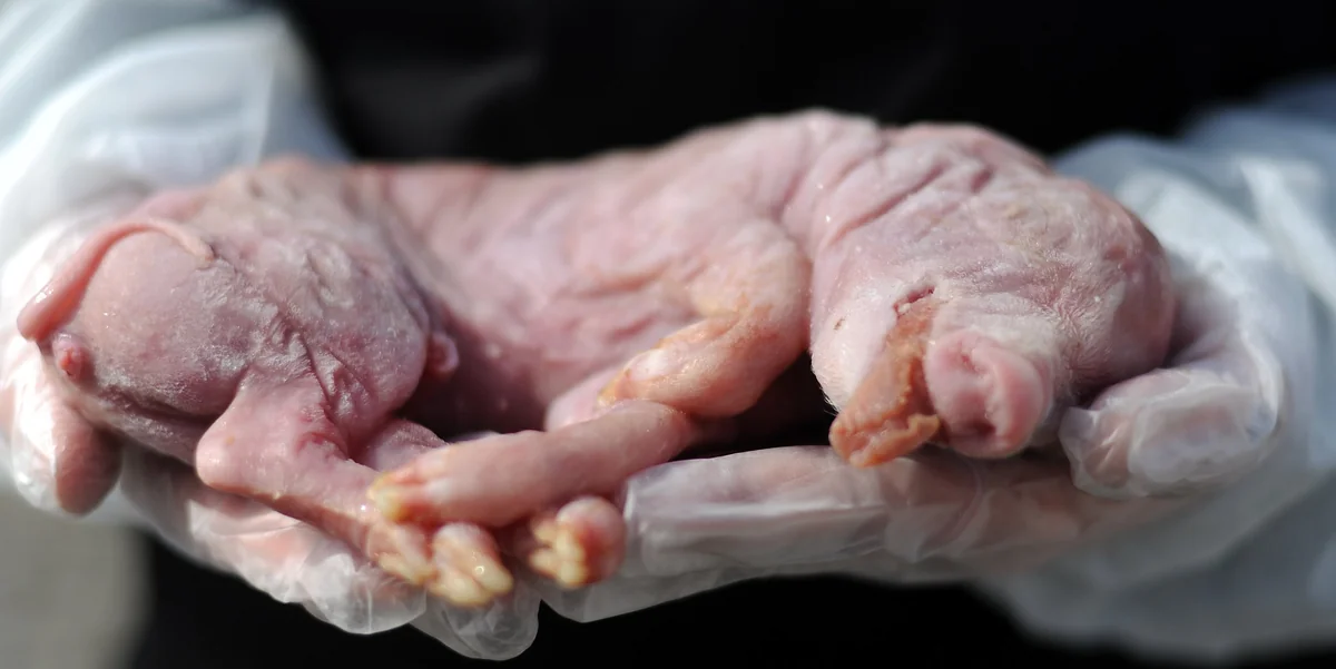 Erst schaut die junge Frau mit Zopf wie die anderen Aktivisten ernst Richtung Horizont, dann wandert ihr Blick doch hinunter zu dem, was in ihren Händen liegt. Ein winziges totes Ferkel. Es passt ganz in die zu einer Schale geformten Handflächen. Nur der rosa Schwanz baumelt hinunter. Die Augen hat es geschlossen. Als sei es direkt nach der Geburt gestorben. Vielleicht wurde es erdrückt. Das Ferkel fühlt sich kalt an.