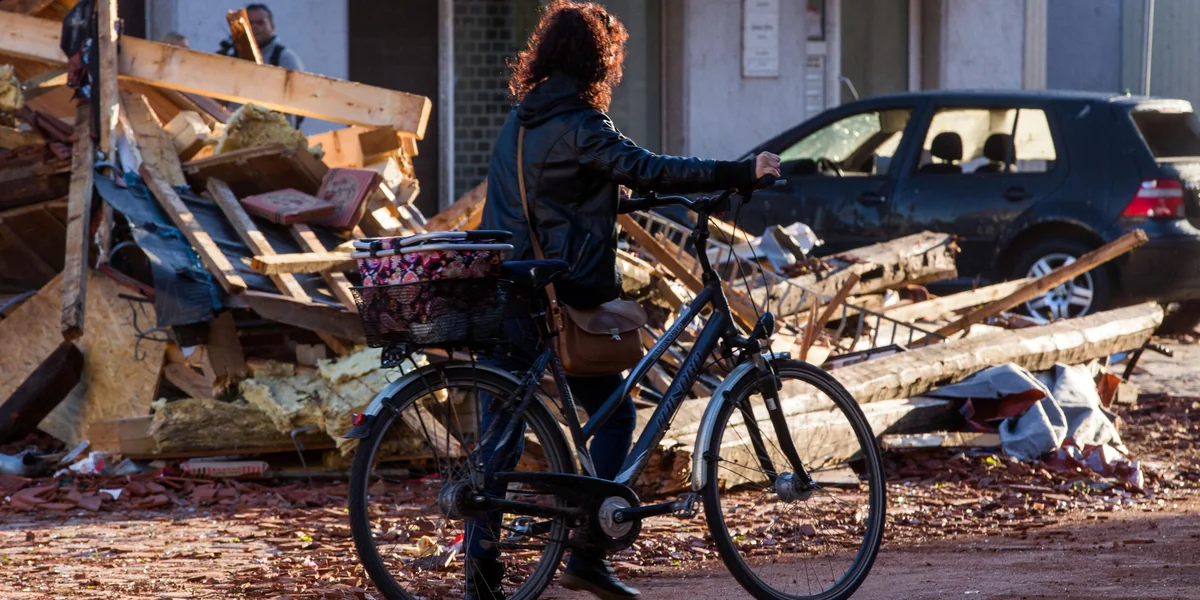 Ihnen allen steht viel Arbeit bevor. Auf den kleineren Straßen und Gehwegen liegen noch Tausende Ziegel und andere Trümmerteile, viele Bäume sind umgestürzt.
